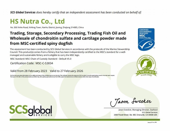 2014년은 행진합니다--- MSC는 전문가 콘드로이틴과 상어 연골 파우더를 확인했습니다. 그것은 2020년 3월 1일까지 2017년 3월 2일에 새로와지고 유효합니다.